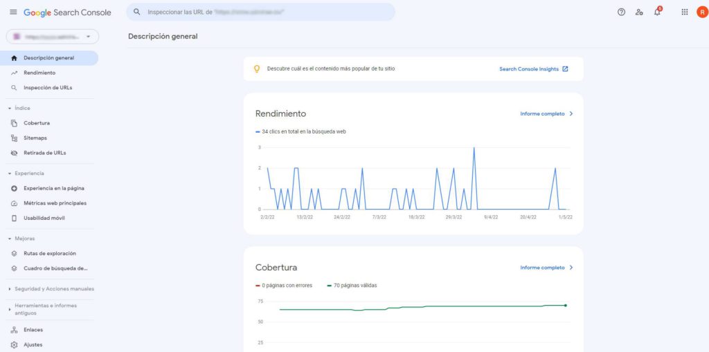 Google Search Console es una herramienta gratuita de Google que nos proporciona información indispensable como las posiciones y volúmenes de visitas tanto de forma general como en cada post.